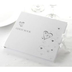 Βιβλίο ευχών σε λευκό χρώμα με ασημένιες καρδoύλες και διακριτικό φιογκάκι. Διαστάσεις: 22 x ..
